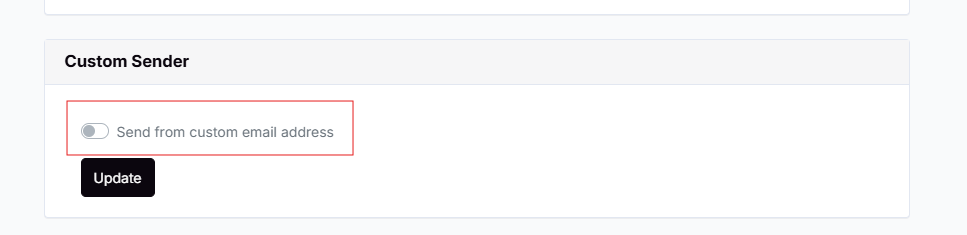 - In Settings -> Email scroll to the Customer Sender section. Toggle on the Send from custom email address
